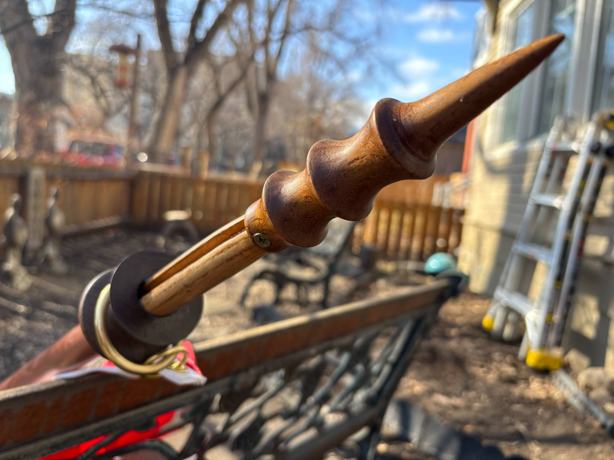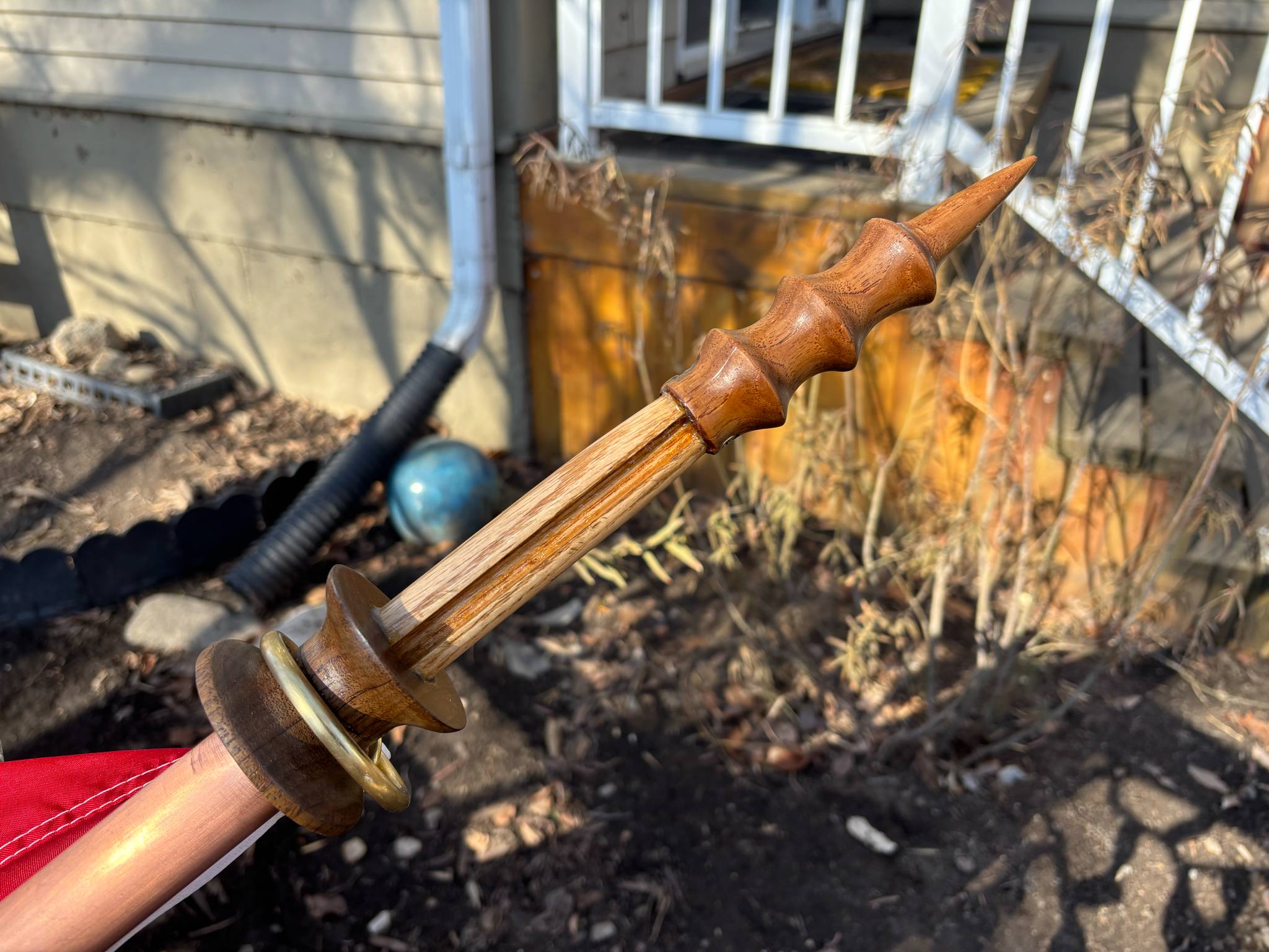 For the body of the pole, I used some reclaimed oak I was gifted by a friend. The oak was turned into a cylinder with a subtle taper from the base to the tip.